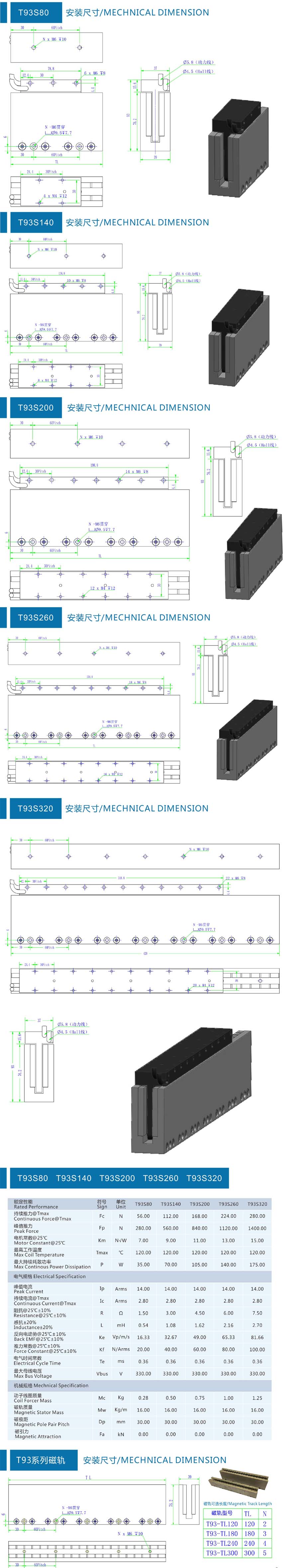 ,T型直線電機)由動子(線圈組件)和雙排磁軌的定子組成
